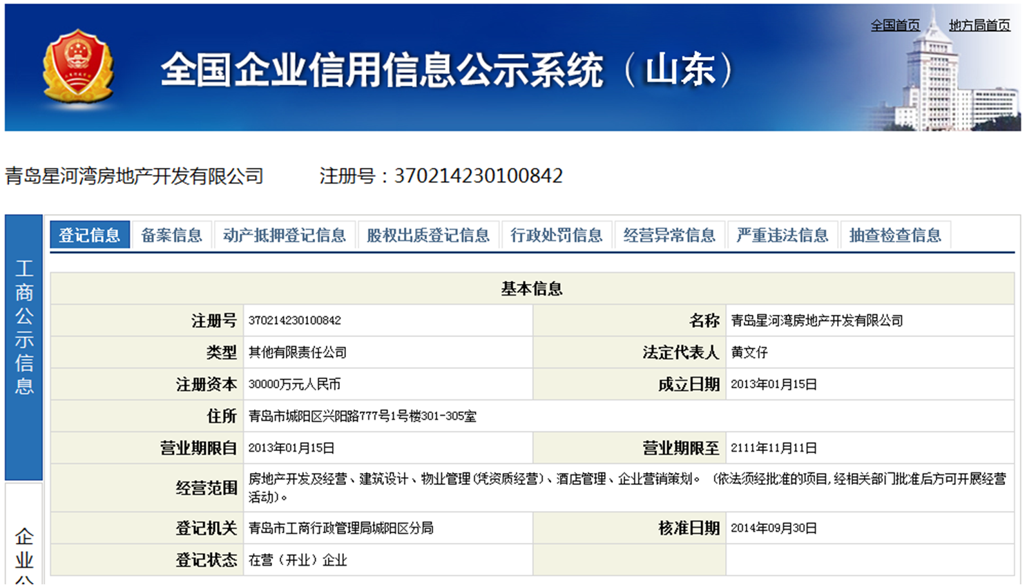 2013年4月8日由青岛星河湾房地产开发有限公司通过招拍挂方式获得六幅地块,根据《国有建设用地使用权出让合同》及《中华人民共和国房地产权证》,六幅地块总面积为557,669.00平方米,其中:城镇住宅用地556,462.10平方米、文体娱乐有地172.40 平方米、批发零售用地344.80平方米、医卫慈善用地689.70平方米。地上可建总面积为1,463,222.05平方米。